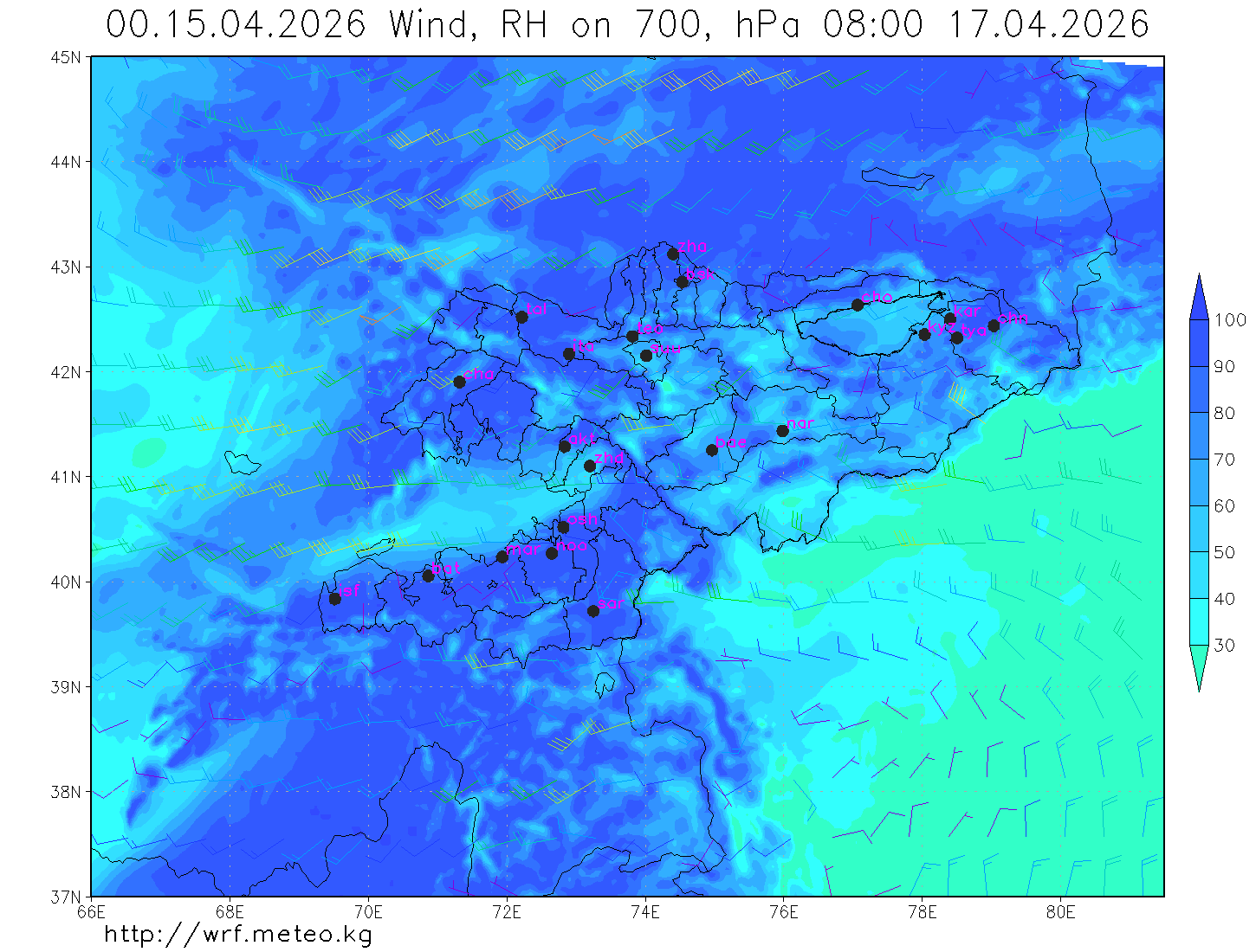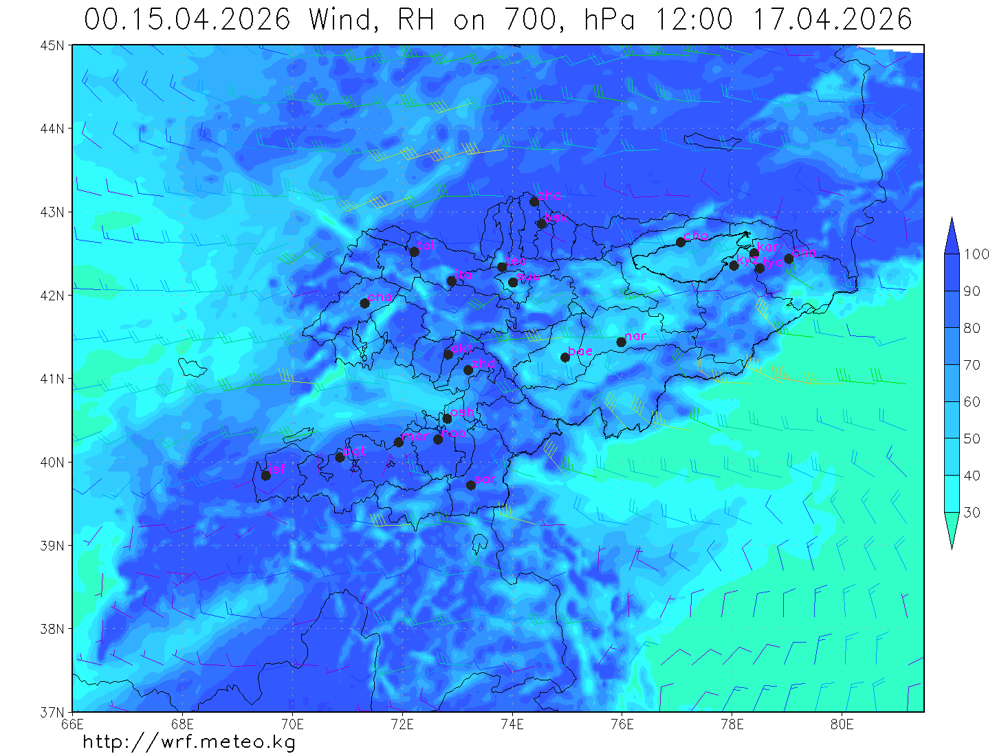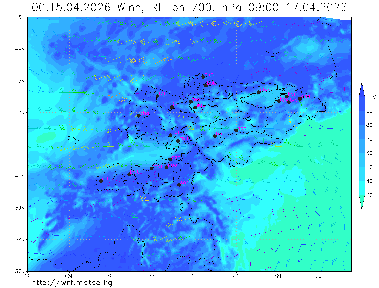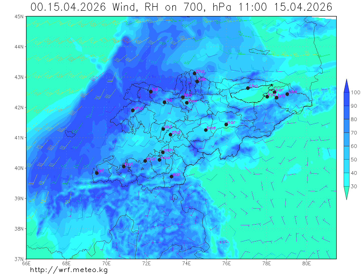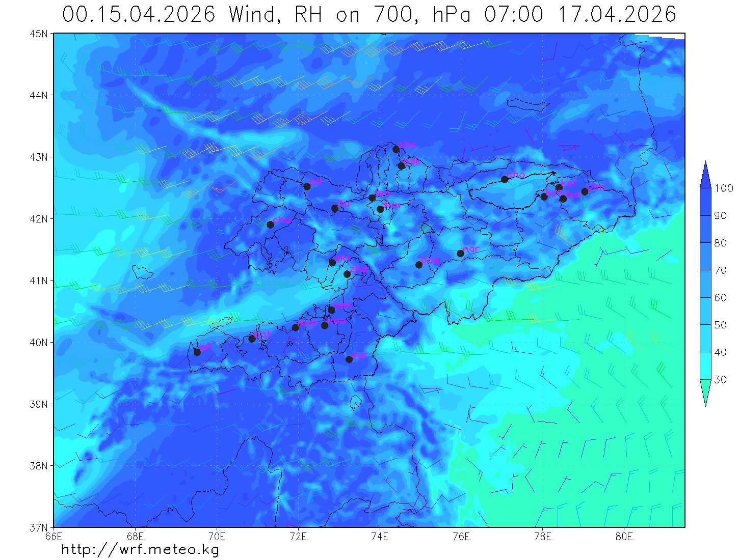 влажность на 700 гПа Влажность на 500 гПа Влажность на 700 гПа