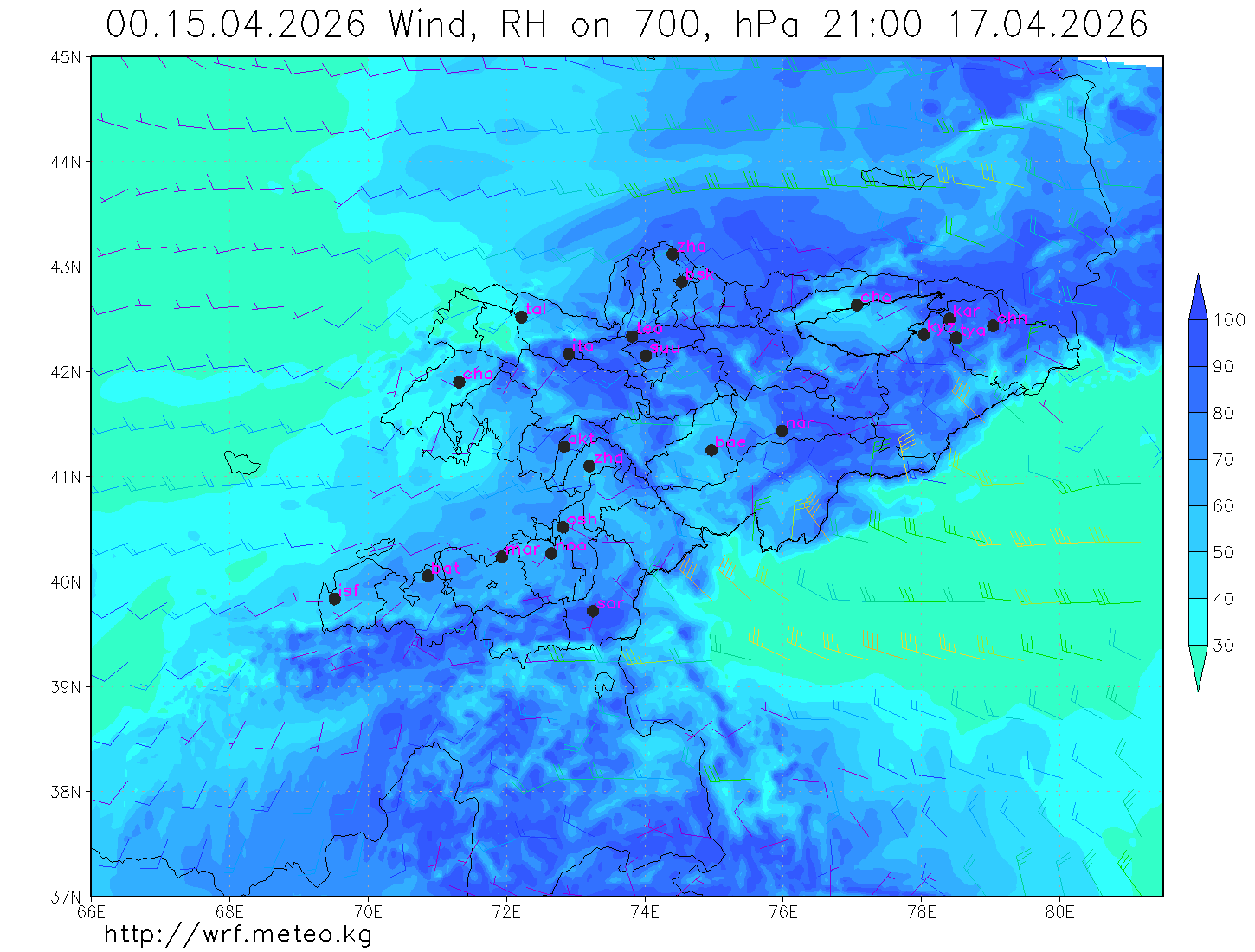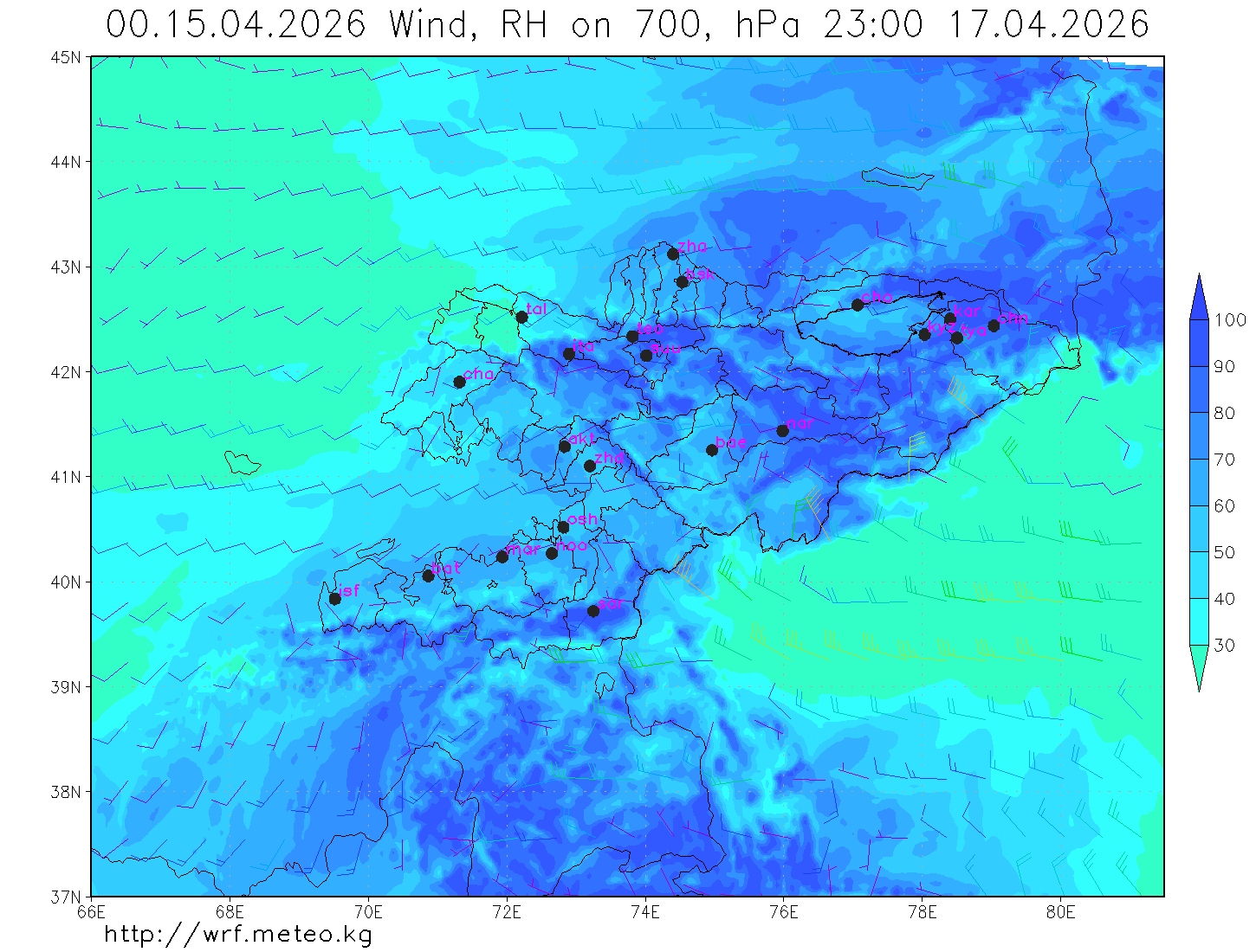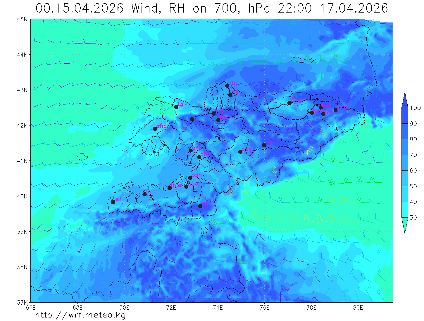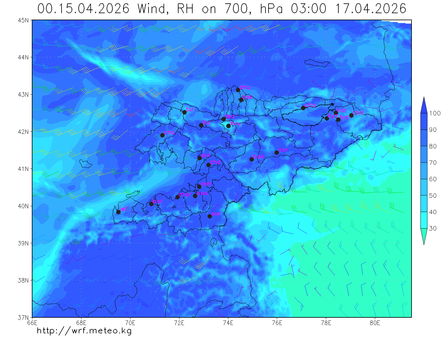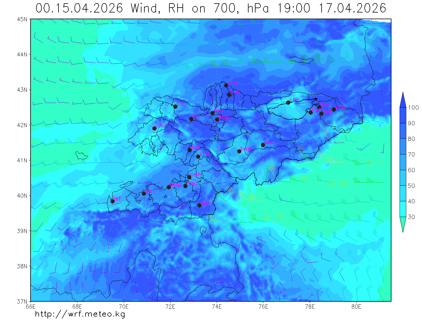влажность на 700 гПа Влажность на 500 гПа Влажность на 700 гПа